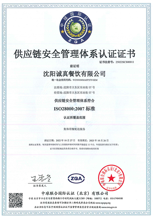 供應(yīng)鏈安全管理體系認(rèn)證證書